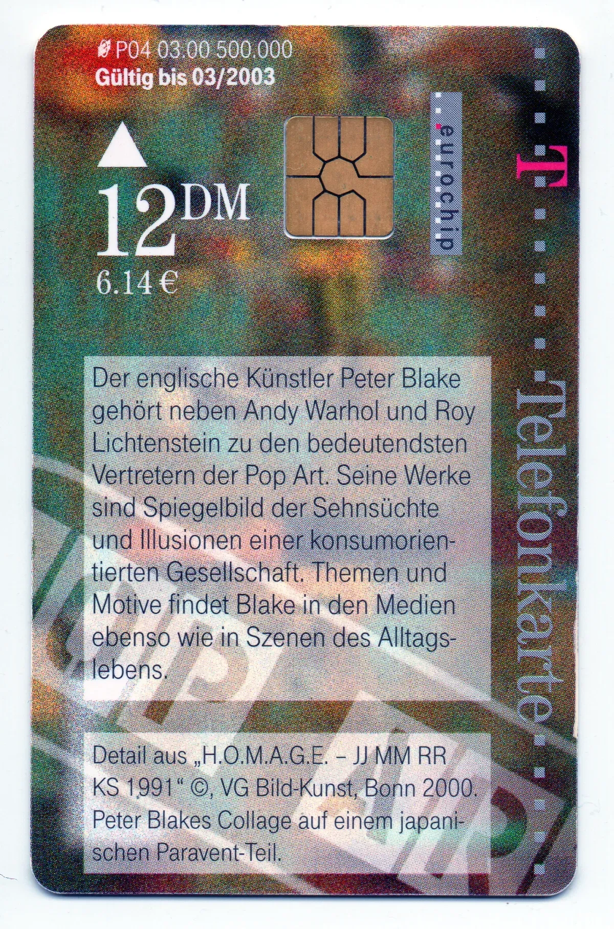 Telefonkarte 12 DM ALFA LAVA BUD ART 445 mit Marilyn Monroe Motiv. Der englische Künstler Peter Blake gehört neben Andy Warhol und Roy Lichtenstein zu den bedeutendsten Vertretern der POP Art.