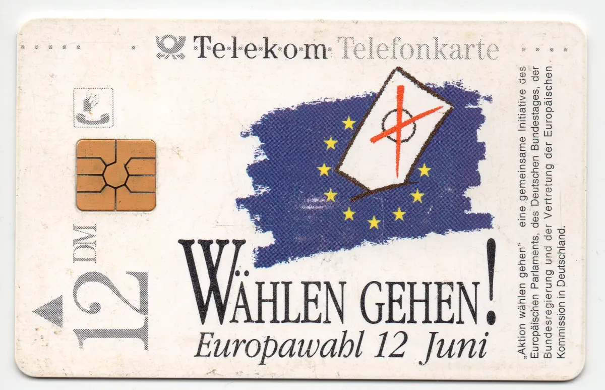 Telefonkarte 12 DM Europäische Union- Wählen Gehen! Europawahl 12 Juni. Eine gut erhaltene karte 1994. Motive sind sehr gut erkennbar und lesbar alles auf der Telefonkarte.
